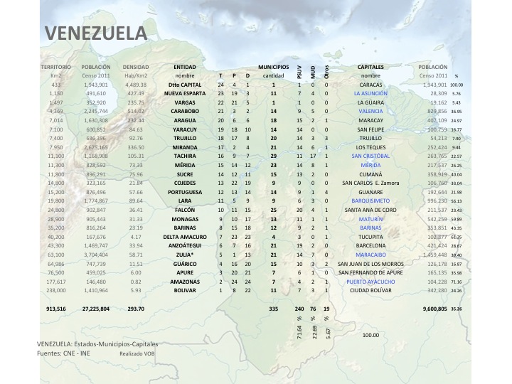 VENEZUELA: estados, municipios y capitales