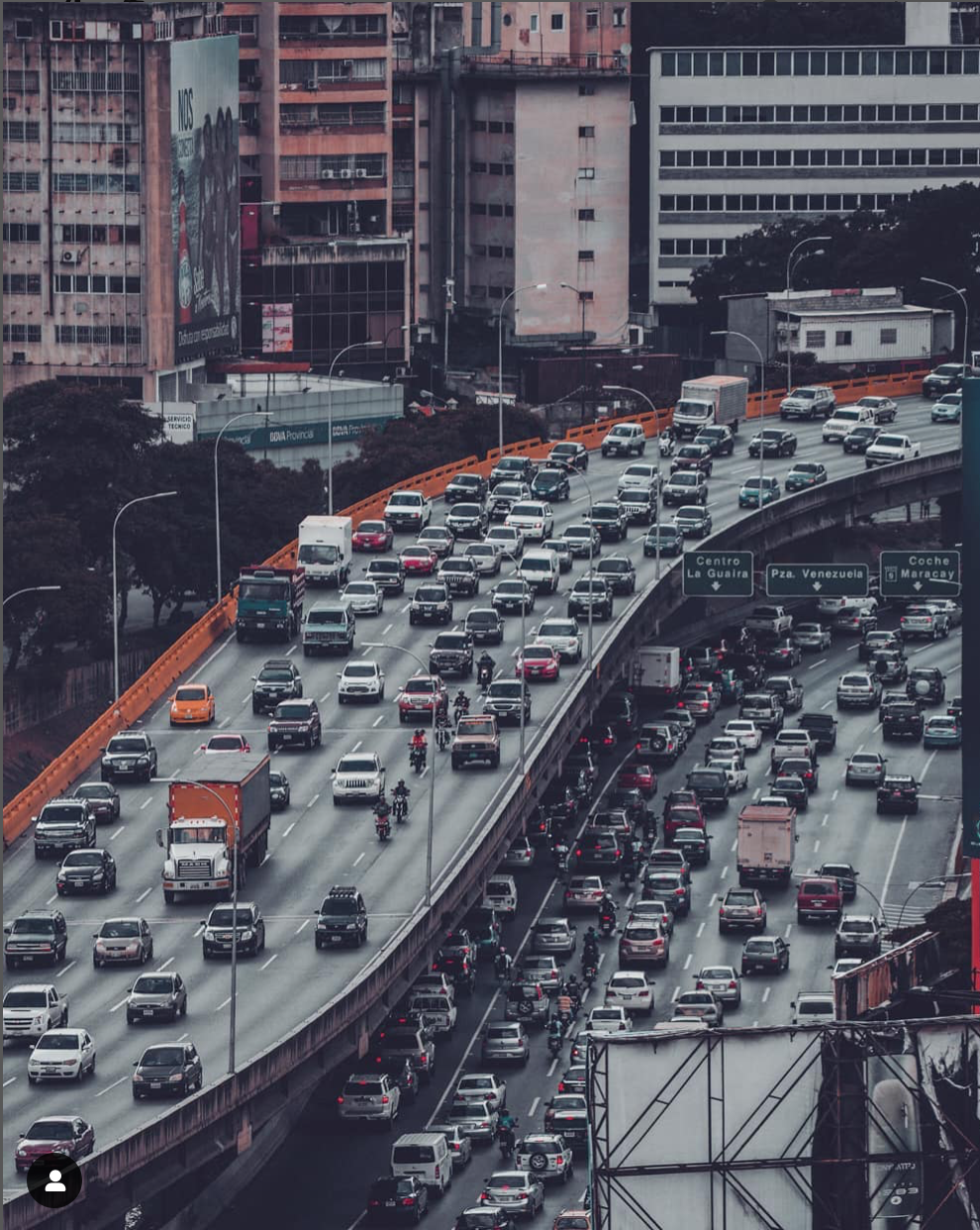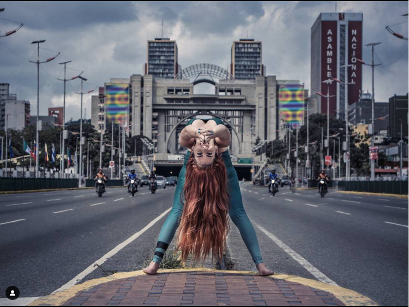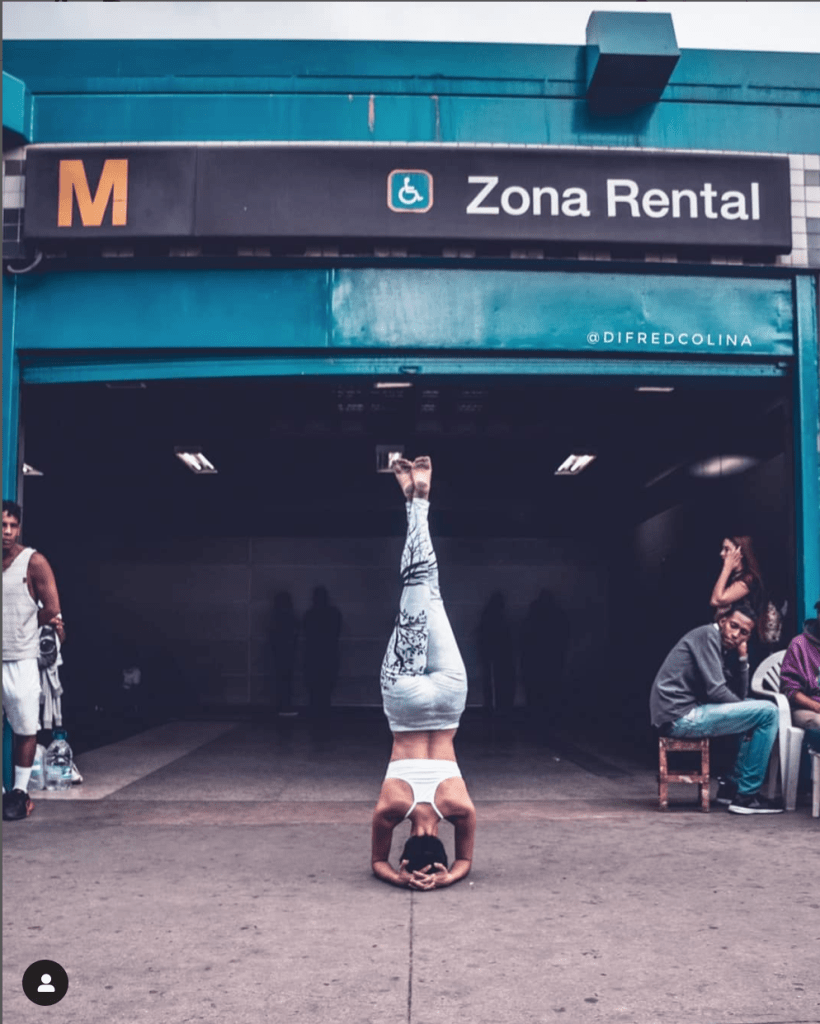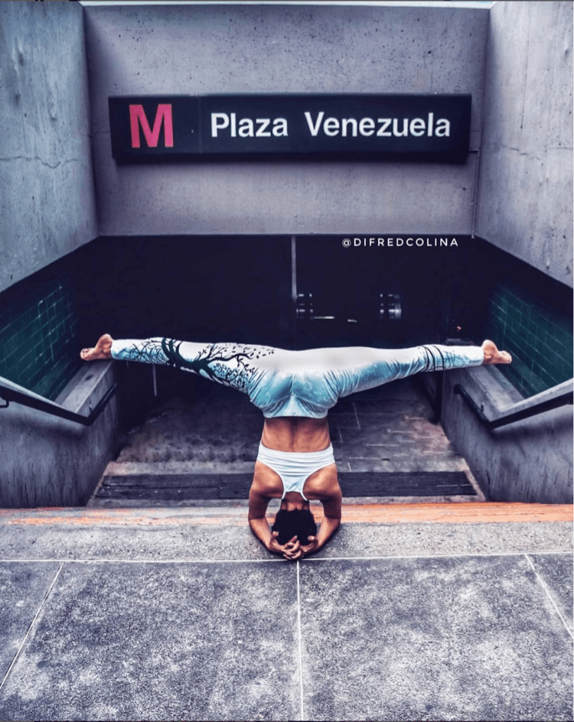 Esta entrada trata sobre su trabajo fotográfico en Caracas y para darte una idea, comenzaré dejándote esta imagen comparativa del Distribuidor La Araña, solo y acompañado de una yoguista en primer plano. Son dos imágenes muy potentes.