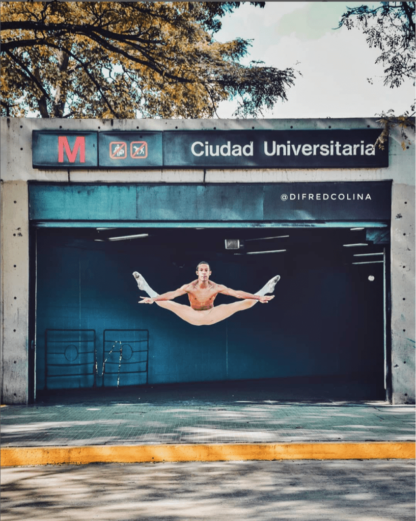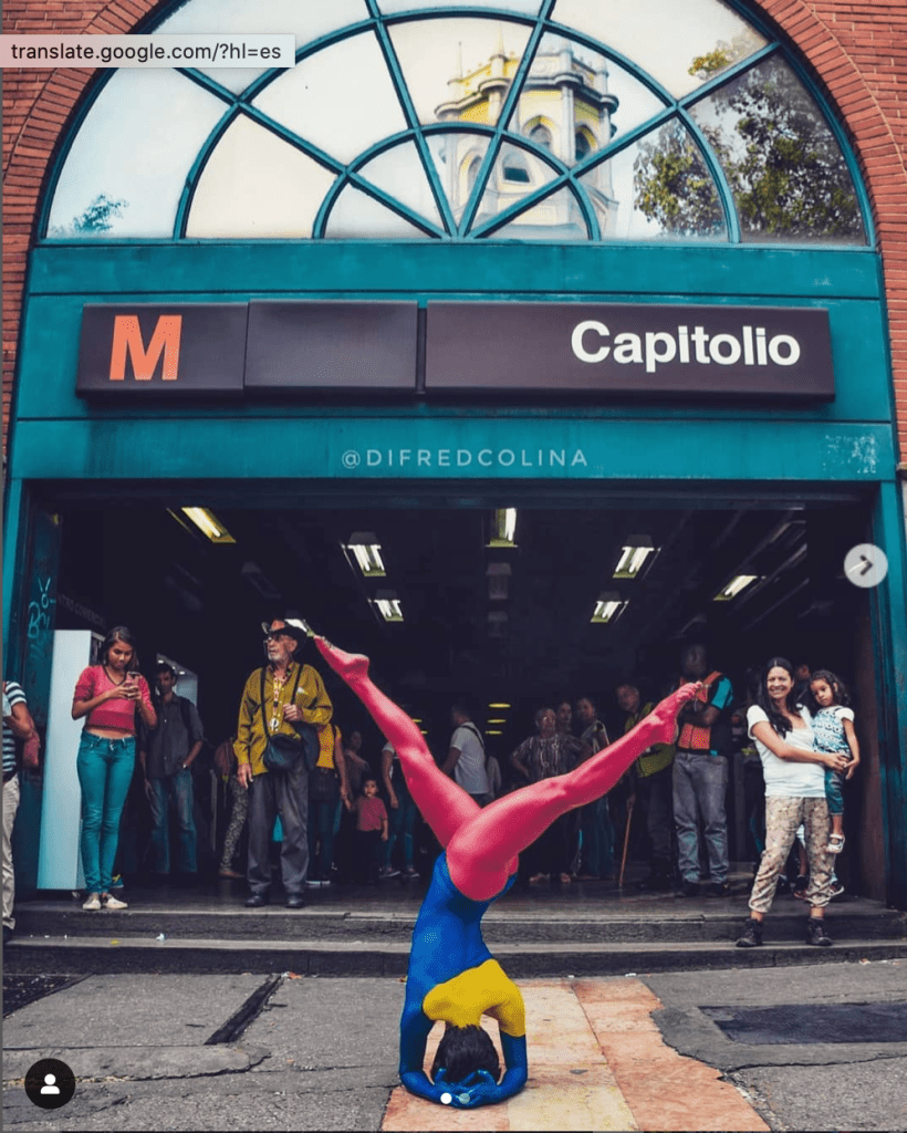 No me quiero imaginar lo que ha debido ser el trabajo de producción de cada una de estas fotografías; acoplar el encuadre urbano estático con la instantaneidad de las acrobacias. En Caracas no estamos acostumbrados a usar la ciudad como escenario debido a un sentimiento de culpa-vergüenza de vivir en una ciudad fea, sucia y agresiva, idea que se desdibuja y se recompone en el trabajo de Difred Colina.