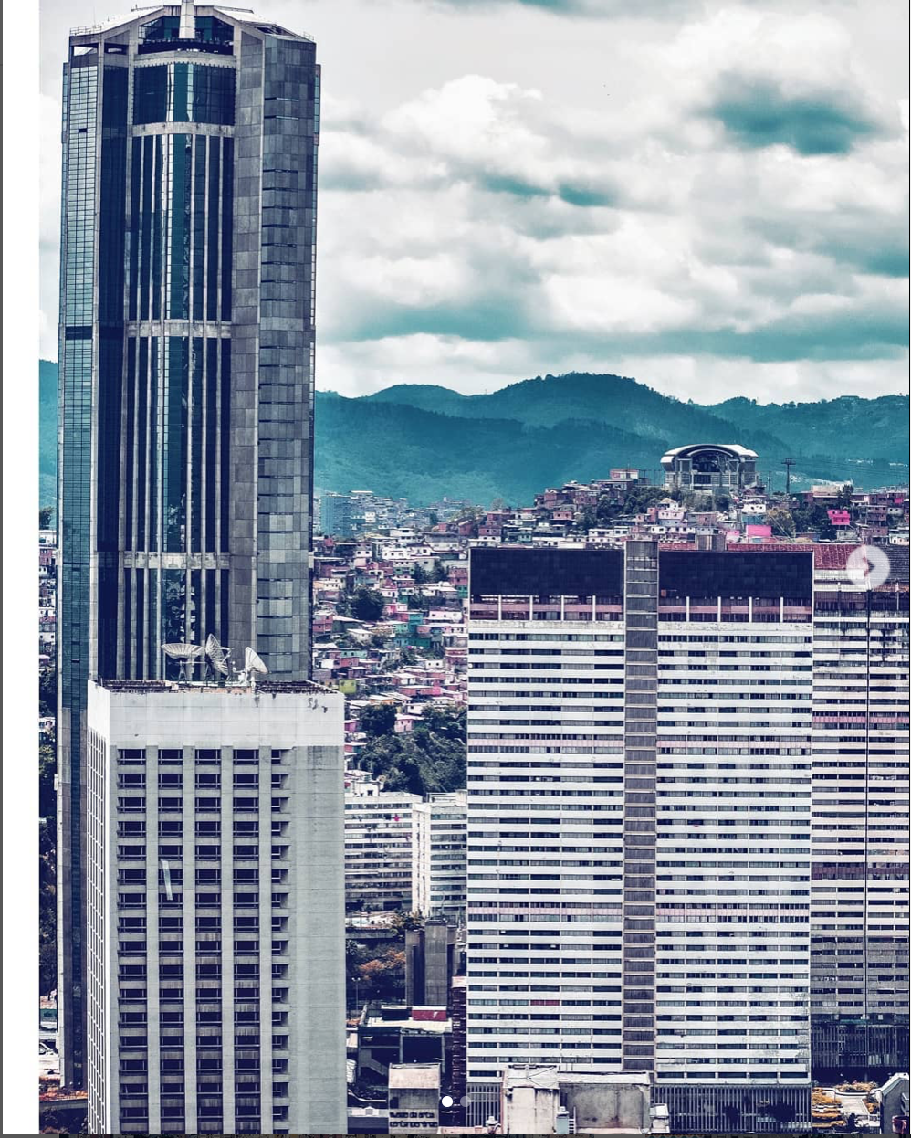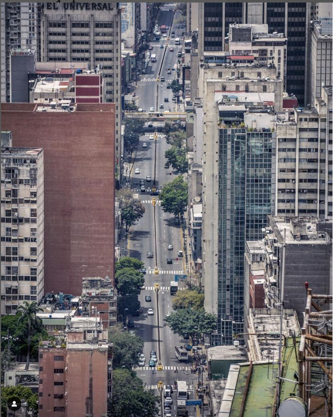 Otro punto que yo personalmente quiero agradecerle, es la no presencia de El Ávila en sus tomas fotográficas. No tengo nada en contra de El Ávila, Caracas sin El Ávila no es Caracas, es cierto; pero me cansa ver a diario cómo se confunde la montaña con la ciudad y viceversa. Infinidad de fotos se publican a diario en las redes como que son de Caracas y en verdad son fotos del El Ávila, algo así: como que la majestuosidad del cerro se tragara o aplastara a la ciudad que está a sus pies. Reconozco que es muy difícil no sucumbir a la belleza de El Ávila al fotografiar a Caracas; por lo tanto, puestos en la balanza (el cerro y la ciudad) siempre gana el cerro con su inconmensurable presencia y la ciudad efimerizándose pierde cuando desaparece.
